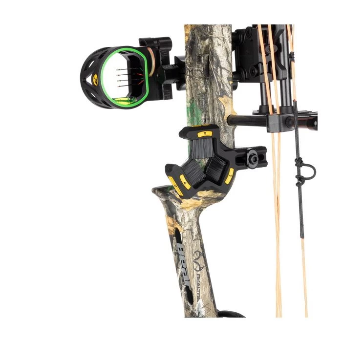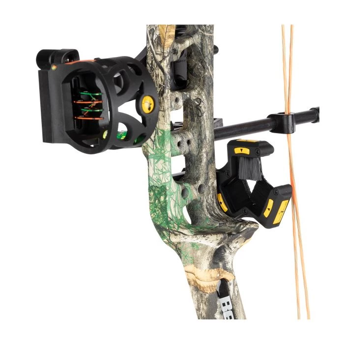 Meet the Bear Archery Legit – this compound bow is made to legitimately fit all ages and skill levels. We’ve engineered this bow to be adjustable from a 14” to 30” draw length range and from 10 to 70 lbs. peak draw weight. All adjustments can be made using an Allen wrench and there is no need for a bow press. The bow comes ready to hunt equipped with Trophy Ridge accessories – a Joker 4-pin sight, 5-Spot quiver, Whisker Biscuit, No-tie peep sight & D loop. The Legit weighs only 3.6 lbs. and fires arrows at 315 feet per second. The new and improved dual cam system provides a smooth draw cycle. This bow is legit.