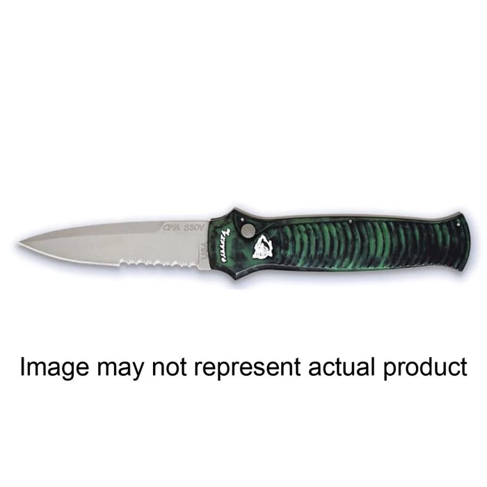 PIRANHA Bodyguard Automatic Knife, Combo Edge, Straight Blade, Steel Blade, 3.3 in L Blade, Aluminum Handle, Handle Color: Tactical Black, Closed Length: 4.4 in, 7.7 in OAL