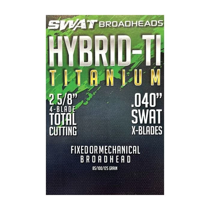 The SWAT A4 is the most advanced mechanical broadhead on the market. On impact the A4 cuts a devastating hole of 2 inches which opens the hide and allows easy penetration of the secondary internal cutting blades. At the entry of the rib cage the secondary 1.75″ cutting blades open which changes the shape of the two blade entry to an extremely massive wound channel through the vital organs. As the A4 leaves the animal it exits with a 4-blade exit wound that can only be described as maximum carnage. Penetration and extreme hemorrhage is achieved with the chisel point strength 440C Stainless Steel X-OUT tip and cutting action of all blades in 4 AXIS design. The frame is constructed of 7075-T6 Aluminum 1.5 times stronger than 6061. The extra strength of the 7075-T6 frame maximizes durability for multiple kills. All mechanical blades are constructed of 420 Stainless Steel and hardened for extreme use.